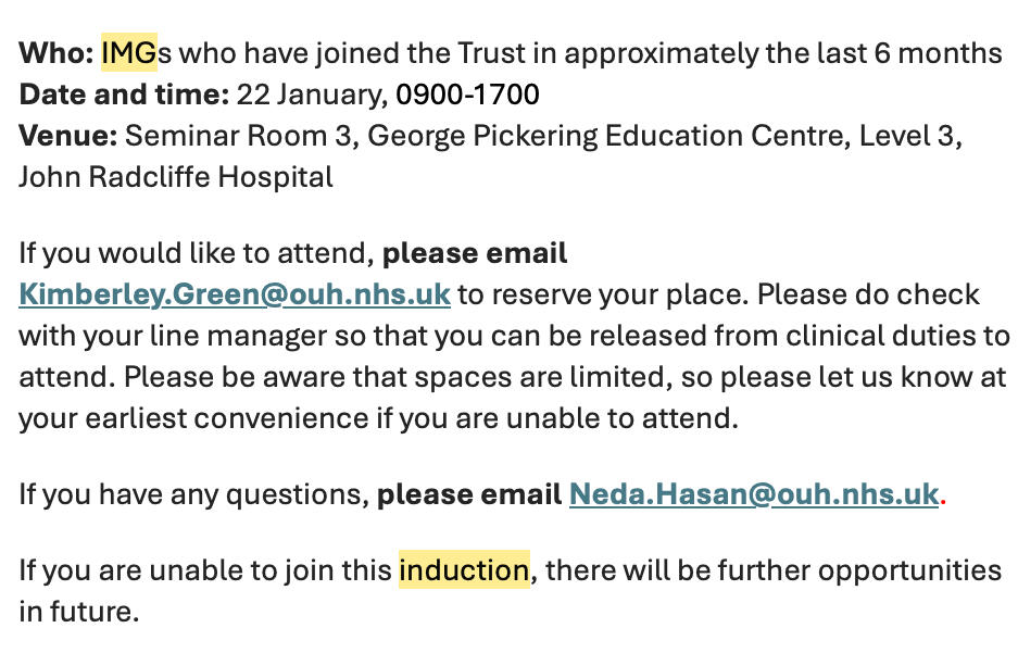 Dr Farheen Fazal is an Internal medicine trainee at OUH. Being an IMG herself, she is very keen on working towards improving experiences of IMG doctors in the deanery. She is the communications secretary at CDIN